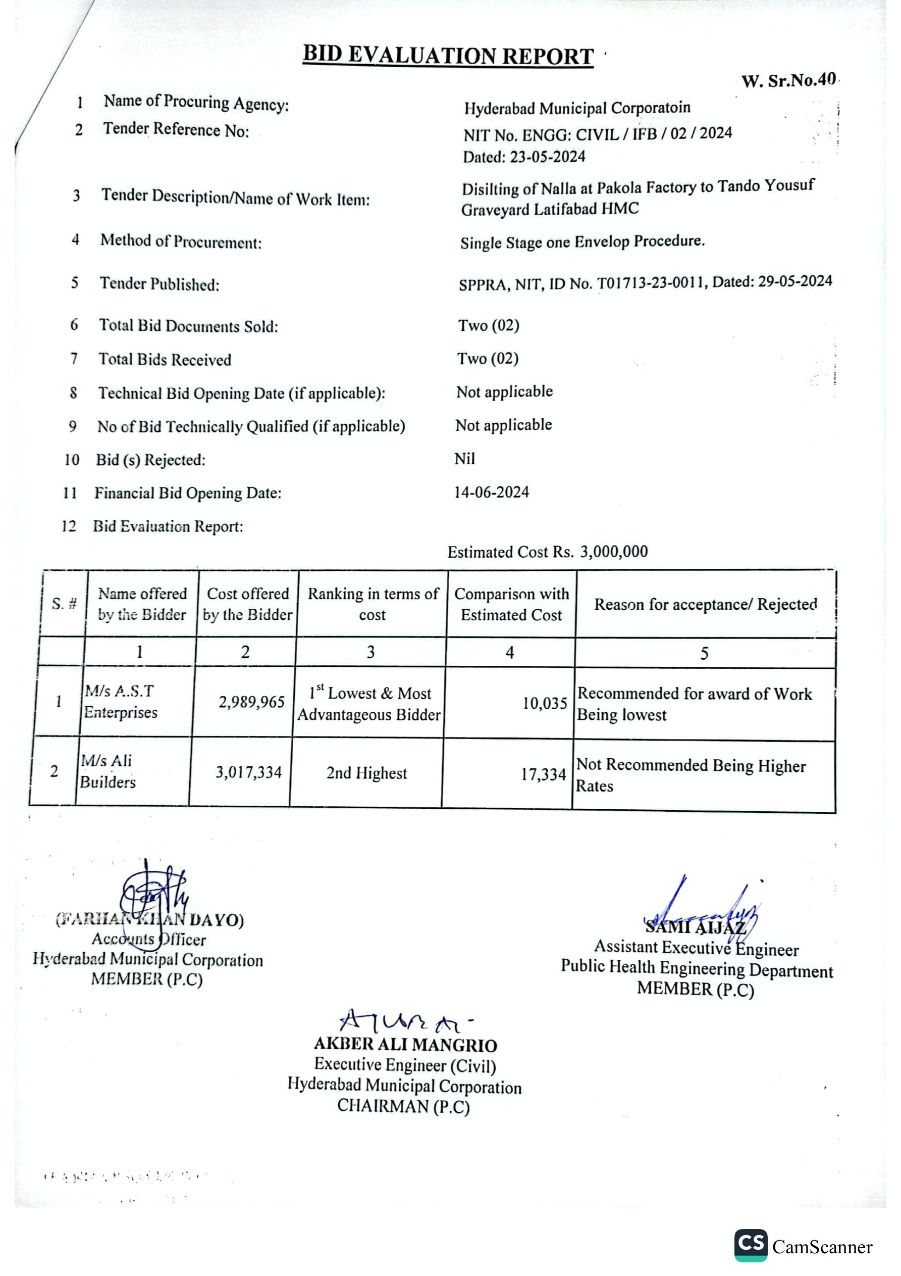 | T01713-23-0011 | BE01713-23-00011-40 | 40 DISILTING OF NALLA AT PAKOLA FACTORY TO TANDO YOUSUF GRAVEYARD LATIFABAD HMC | Office of Mayor Hyderabad Municipal Corporation Hyderabad (27-Local Government Department) | 26-06-2024 | Hyderabad | Active |