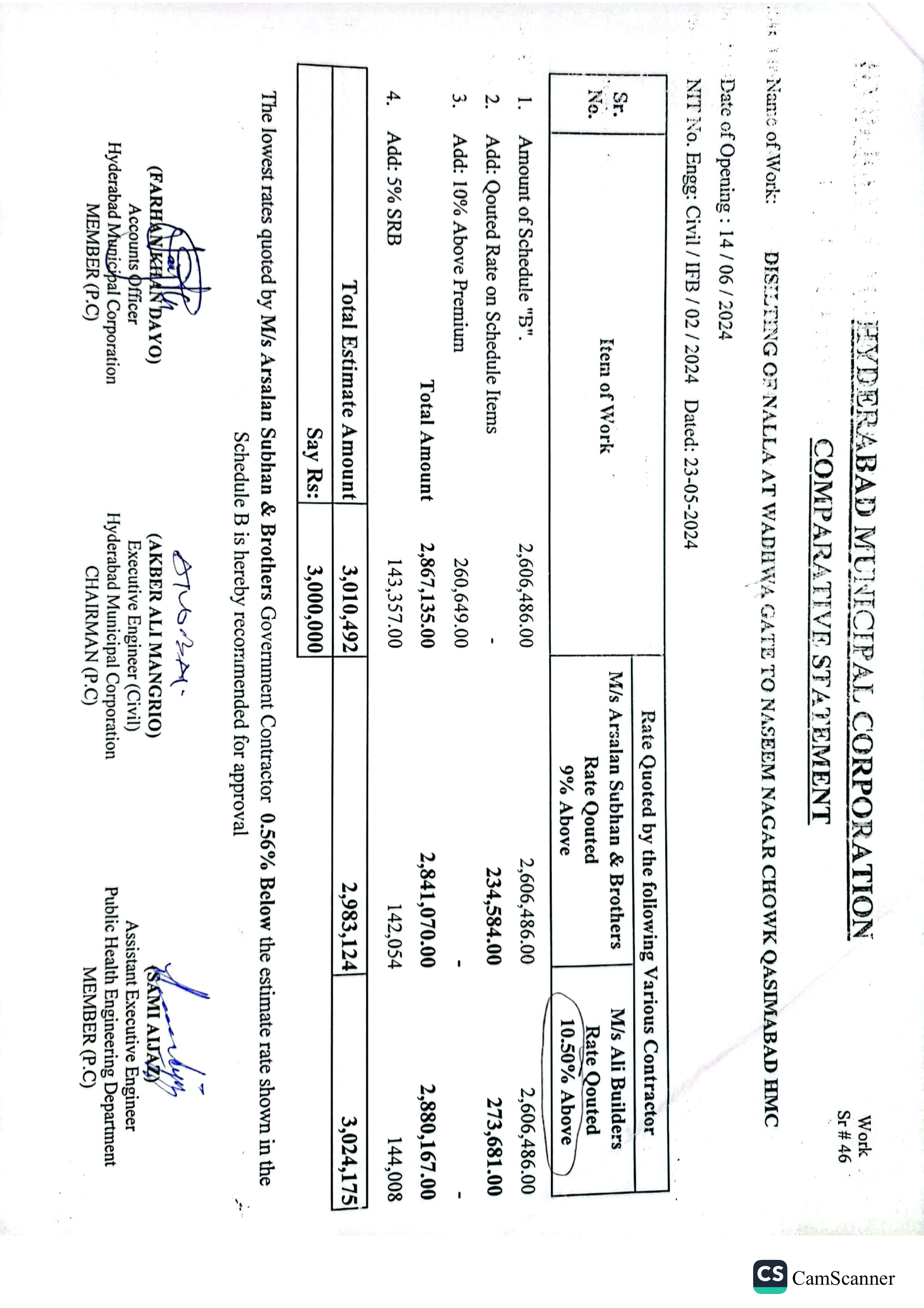 | T01713-23-0011 | BE01713-23-00011-46 | 46 DISILTING OF NALLA AT WADHWA GATE TO NASEEM NAGAR CHOWK QASIMABAD HMC | Office of Mayor Hyderabad Municipal Corporation Hyderabad (27-Local Government Department) | 26-06-2024 | Hyderabad | Active |