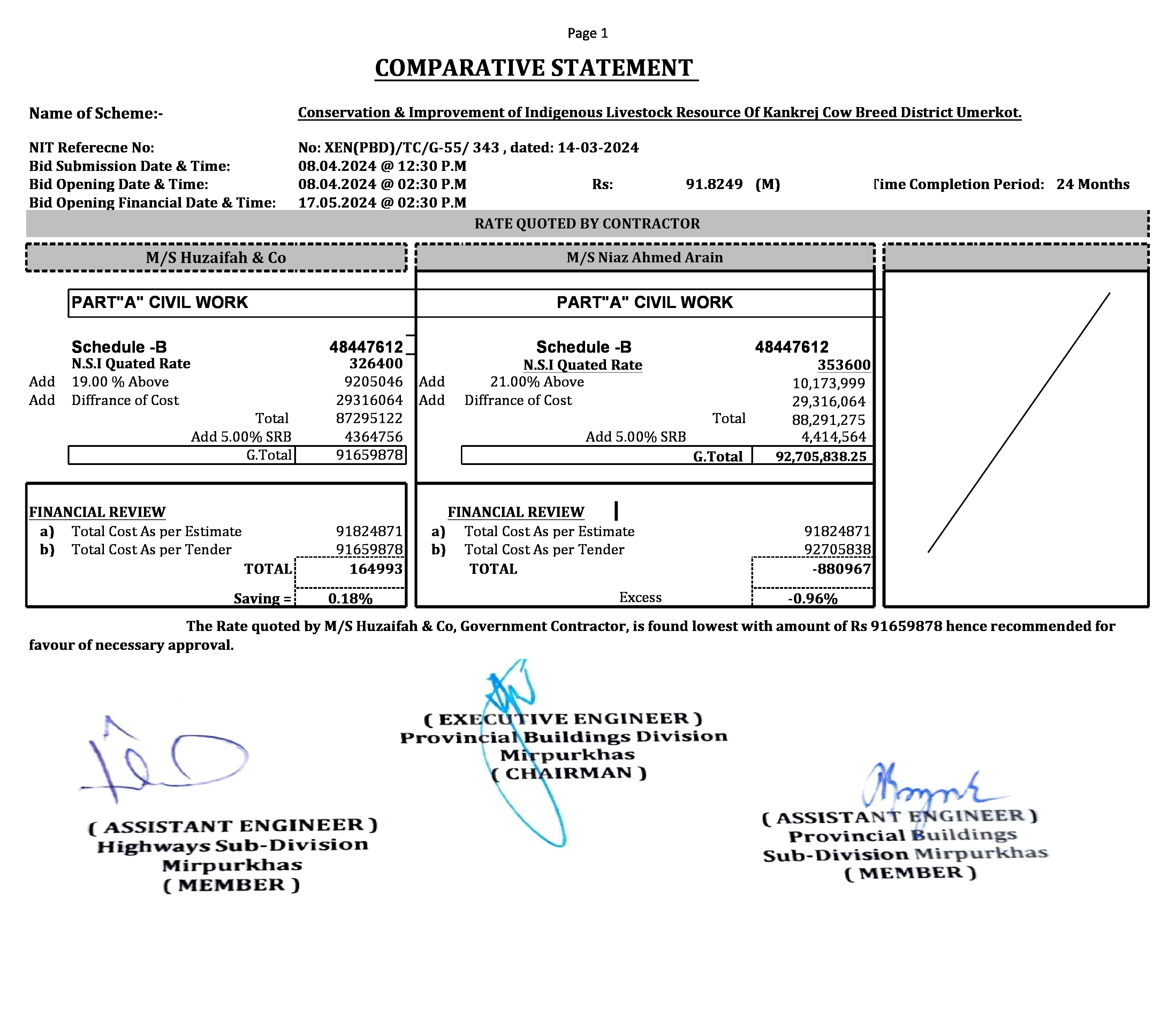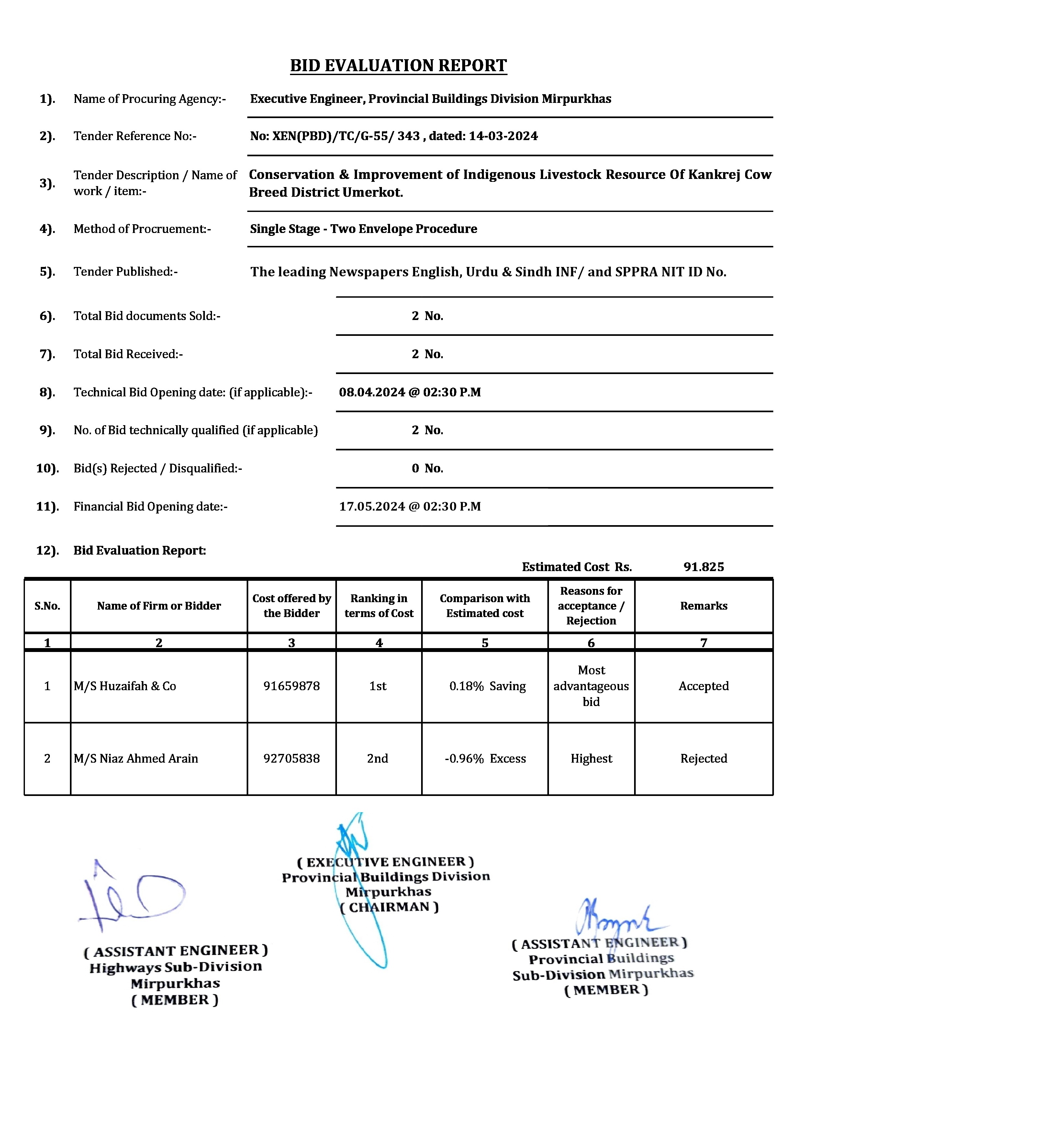 | T00734-23-0002 | BE00734-23-0001-2 | 6 Conservation & Improvement of Indigenous Livestock Resource Of Kankrej Cow Breed District Umerkot. | Provincial Building Division Mirpurkhas (51-Works and Services Department) | 20-05-2024 | Mirpur Khas | Active |