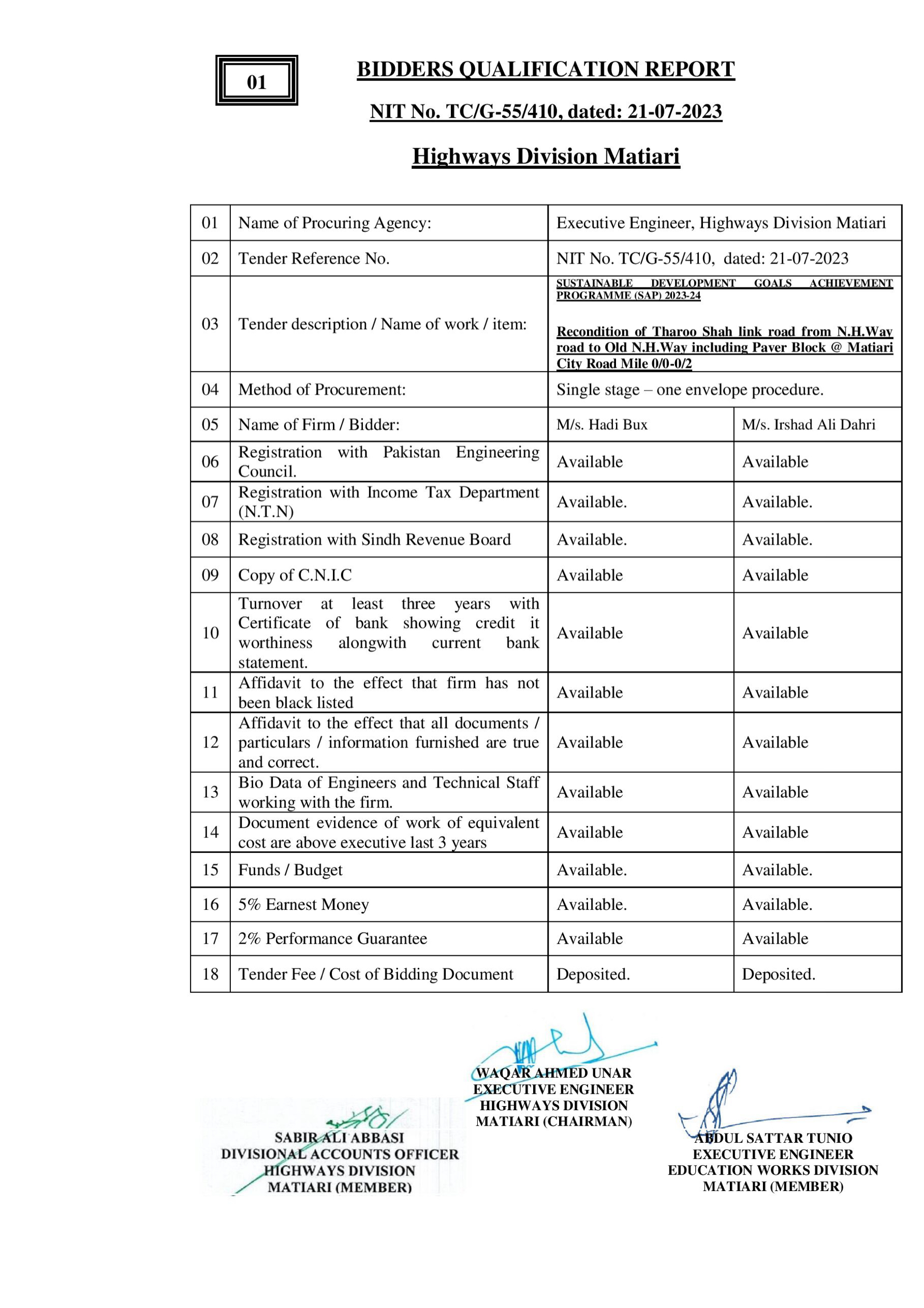 | T00615-23-0001 | BE00615-23-0001-5 | 05-Construction of Paver Block @ Various Streets of Ward No. 05 & 06 City Matiari | XEN Highway Division Matiari (51-Works and Services Department) | 08-08-2023 | Matiari | Active |
