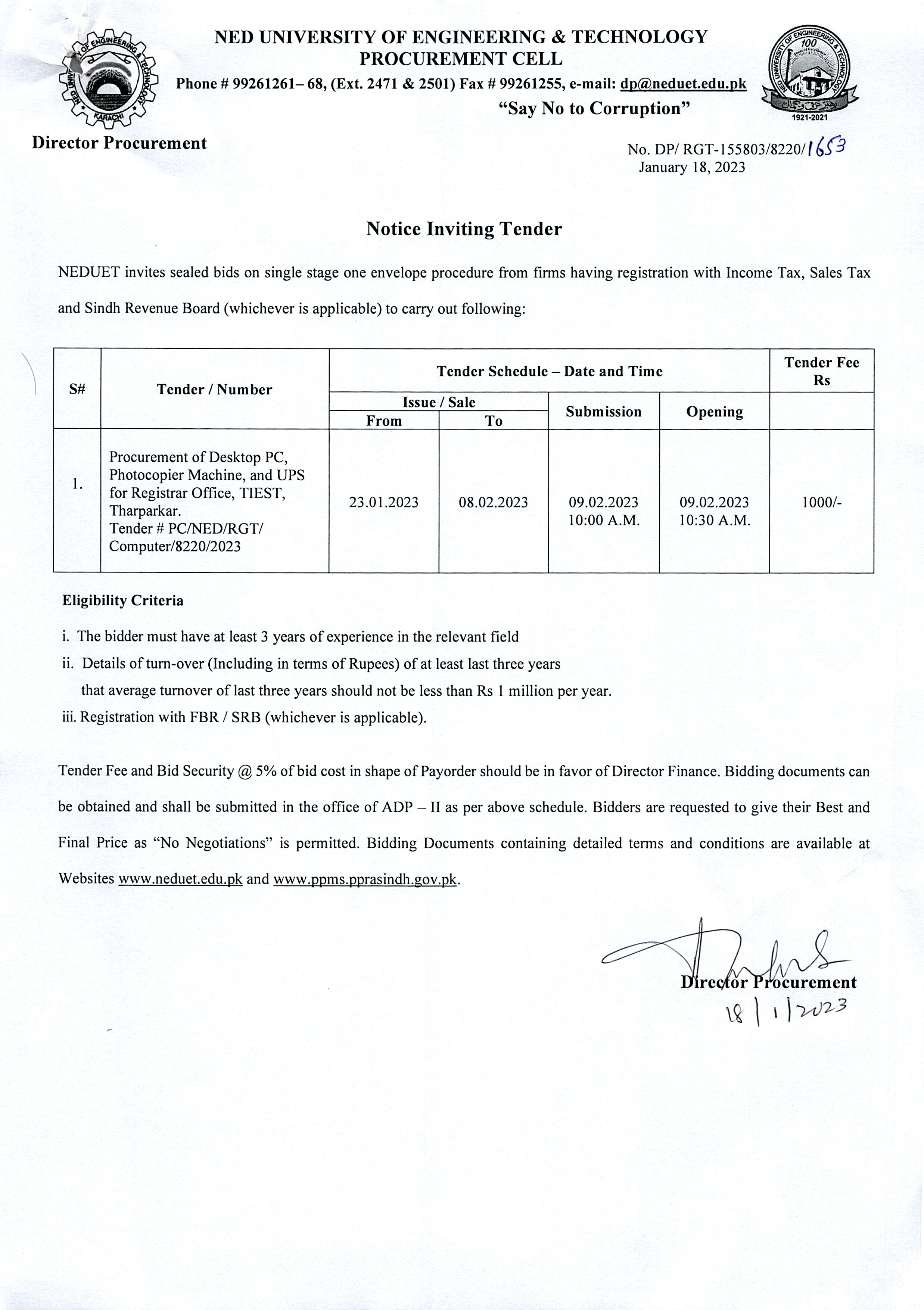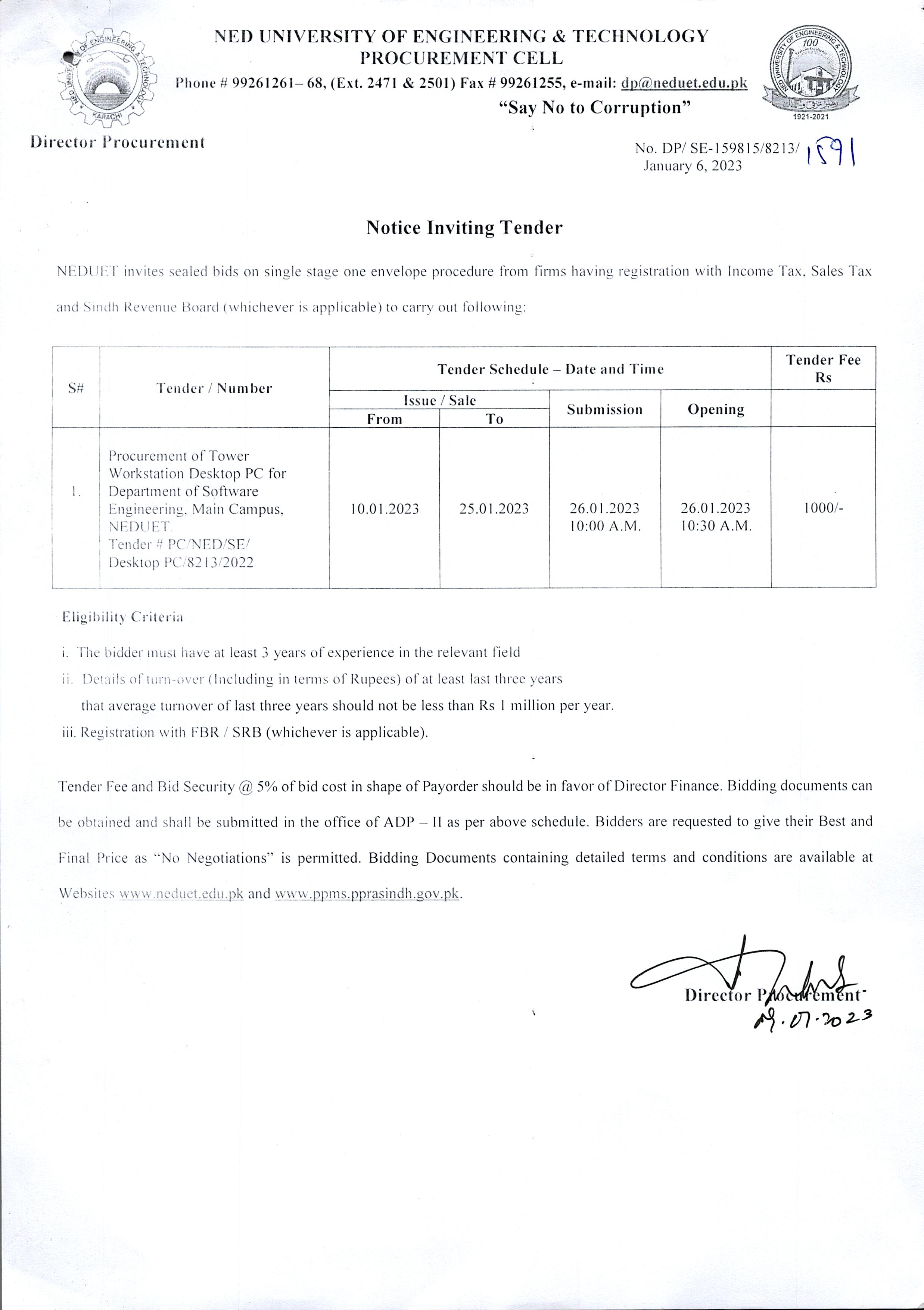 Procurement of High Performance Compung Machine and Printer for Department of Computer and Informaon System Engineering.