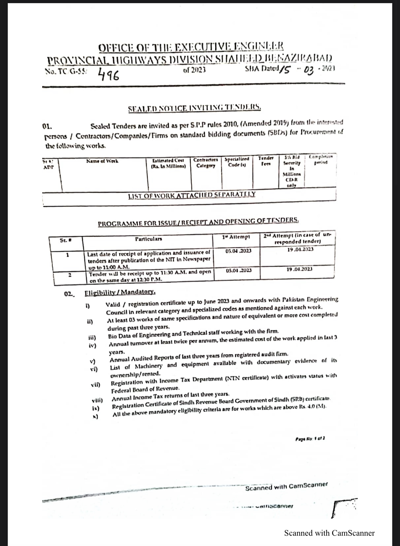 XEN PROVINCIAL HIGHWAY DIVISION KHAIRPUR MIRS