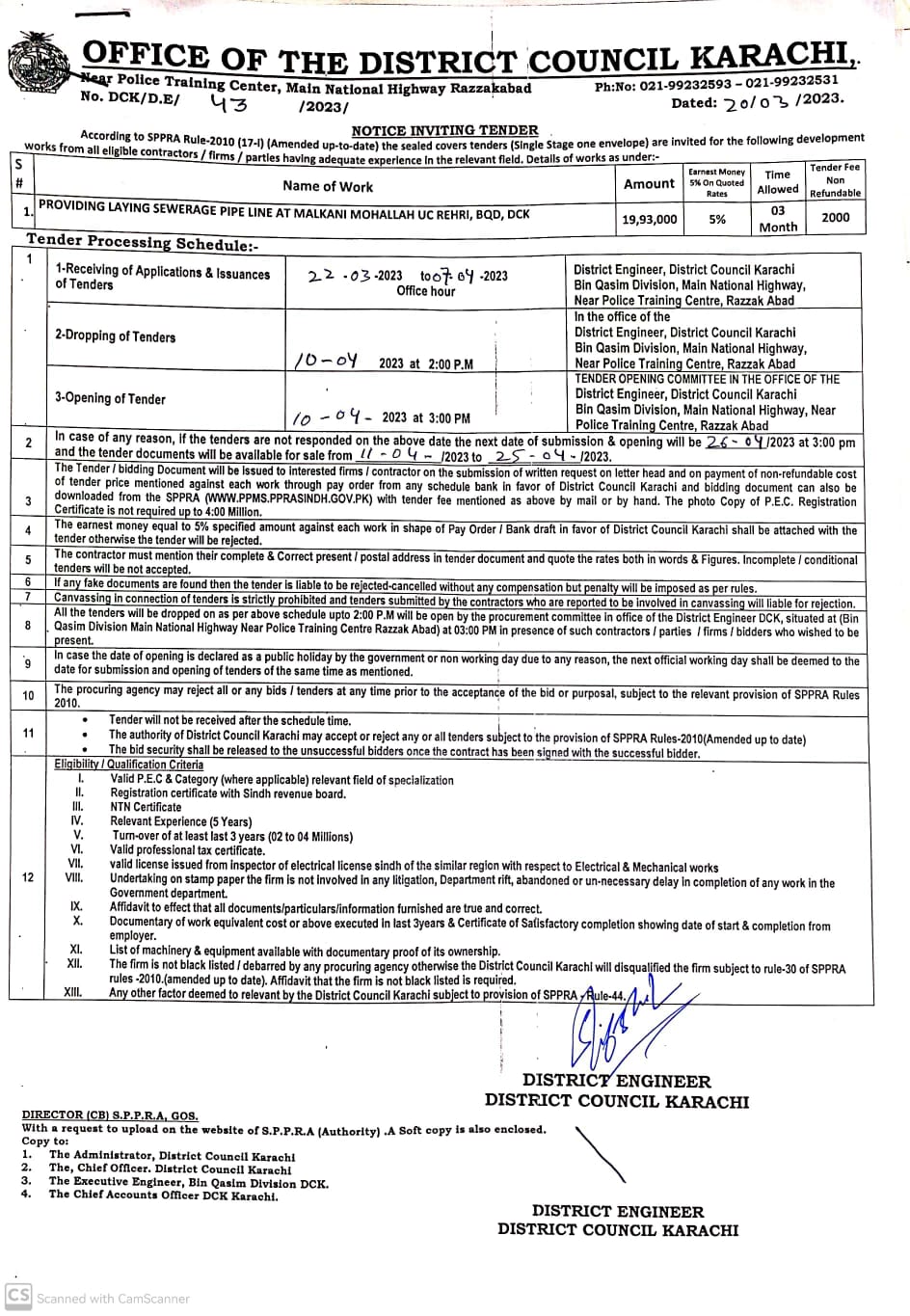 DCK/D.E/M&E/317/2023 Dated: 03-05-2023