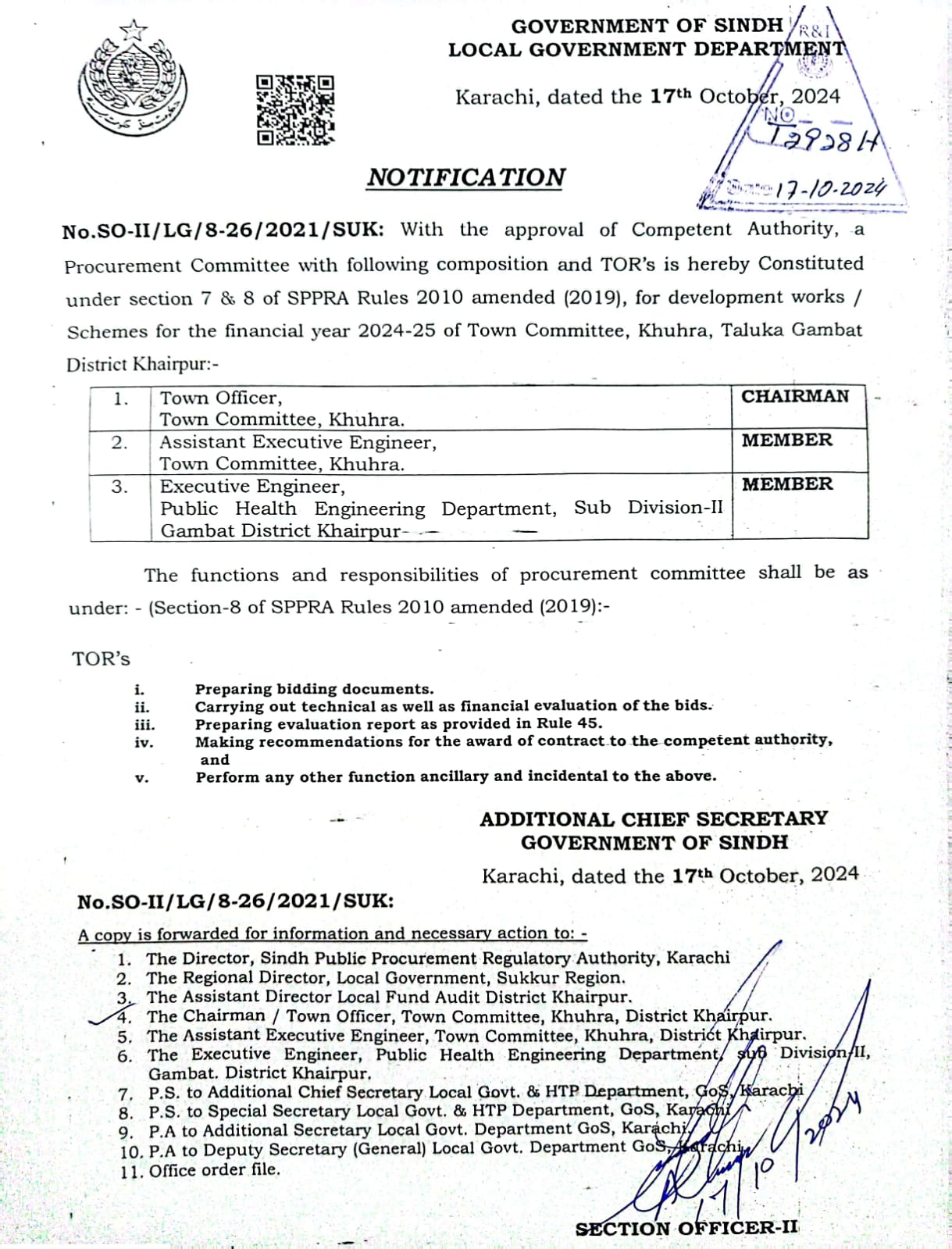 TOWN COMMITTEE KHUHRA (27-Local Government Department)